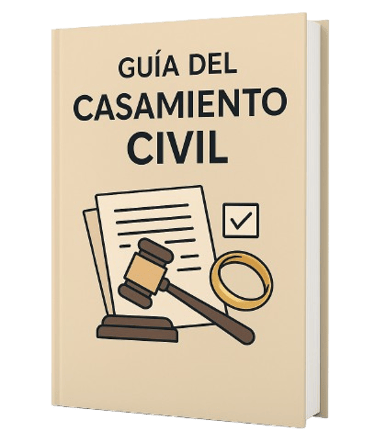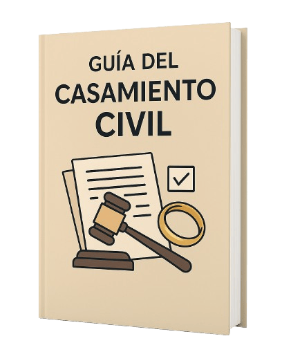 Los 10 primeros que compren hoy recibirán GRATIS la Guía del Casamiento Civil, explicando los tipos de matrimonio civil y toda la burocracia para casarte sin estrés ni sorpresas.